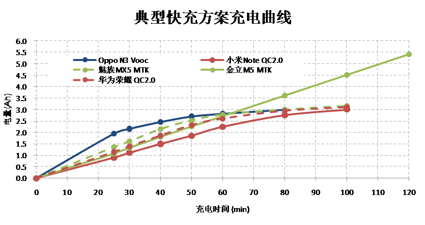 但是随着智能手机快速普及,手机电池容量越来越大,出现了快速充电的需求,目前已经有多个标准如OPPOVooc标准,高通的QC2.0标准,MTK的PumpExpressPlus的标准横出于世。在快速充电的情况下,在前30分钟内的电流会很大,一般会达到3A左右。