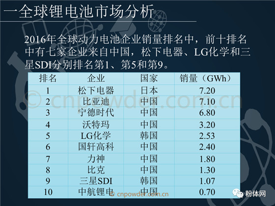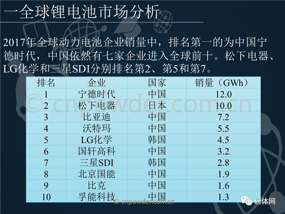 2017年全球动力电池企业销量中,排名第一的为中国宁德时代,中国依然有七家企业进入全球前十。松下电器、LG化学和三星SDI分别排名第2、第5和第7。本文详细介绍了以上公司的综合实力、对比分析等。